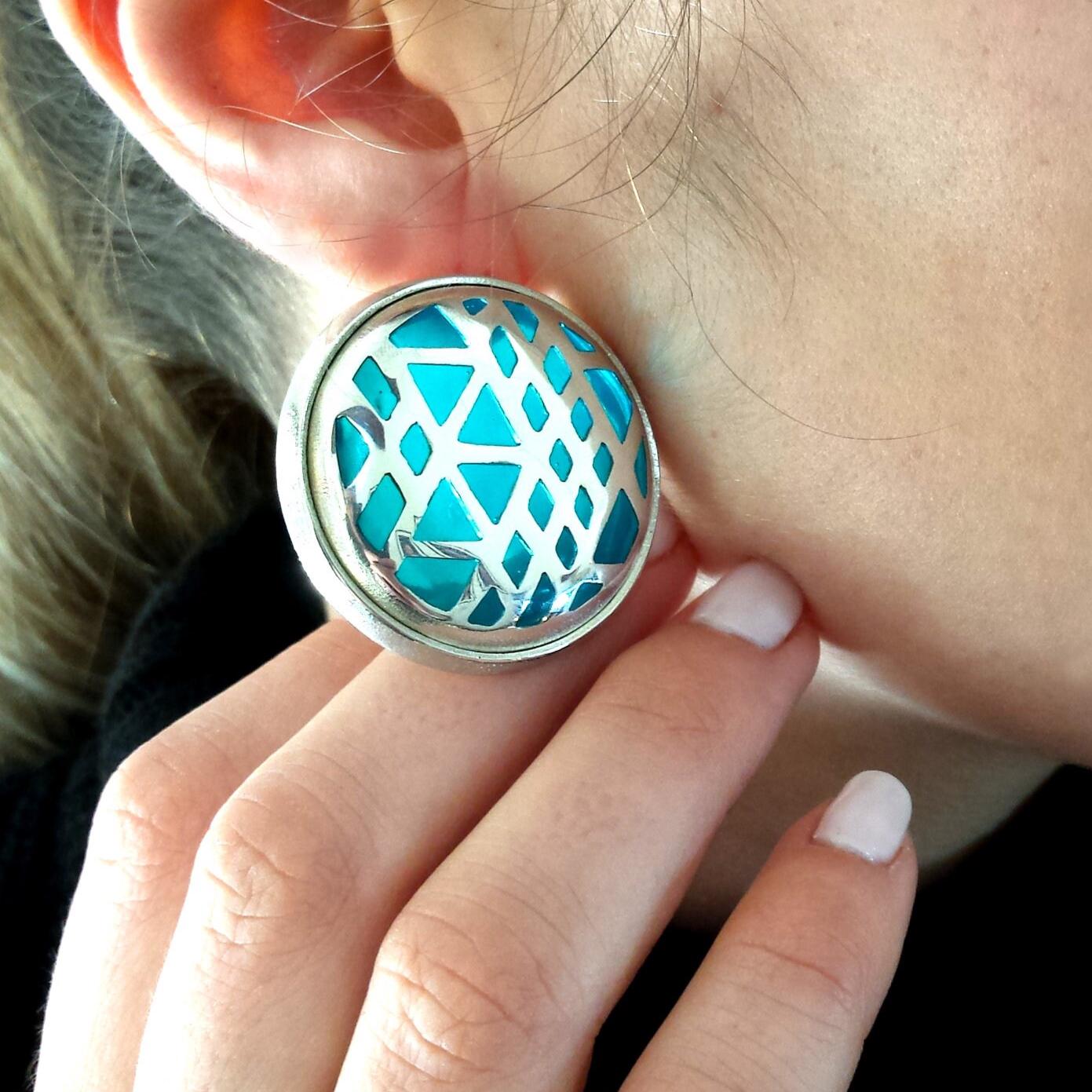 EURIDICE are handmade sterling silver earrings with a scratch-proof enamels finish that draws inspiration from the stained glass windows adorning the grandest basilicas and chatedrals of Florence. Vibrantly hued and timeless, enamels make a strong statement in these iconic earrings.