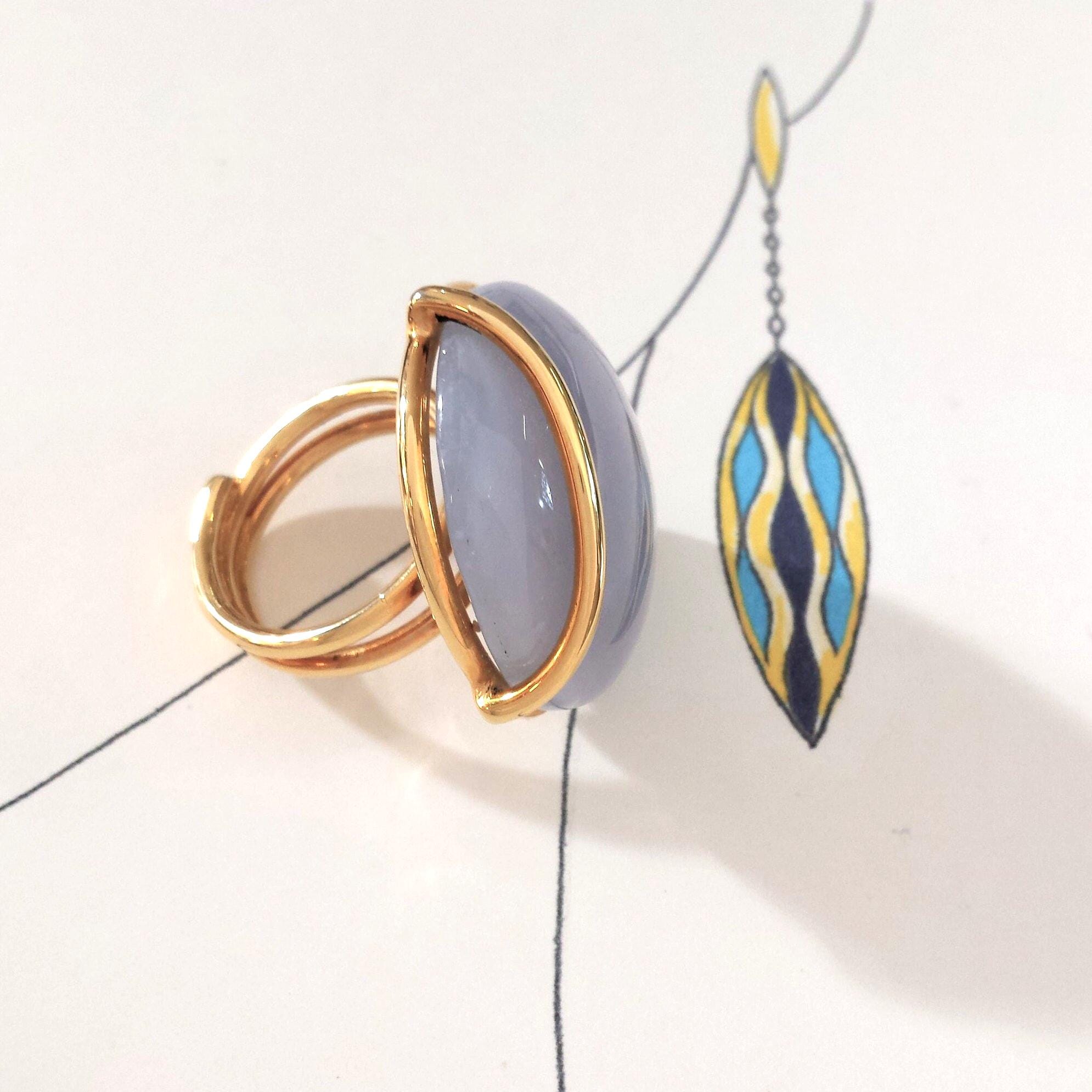 REDÓ FLORENCE 1989 • Ring DEMETRA, 24Kt gold plated bronze with natural chalcedony • Handmade in Florence, Italy