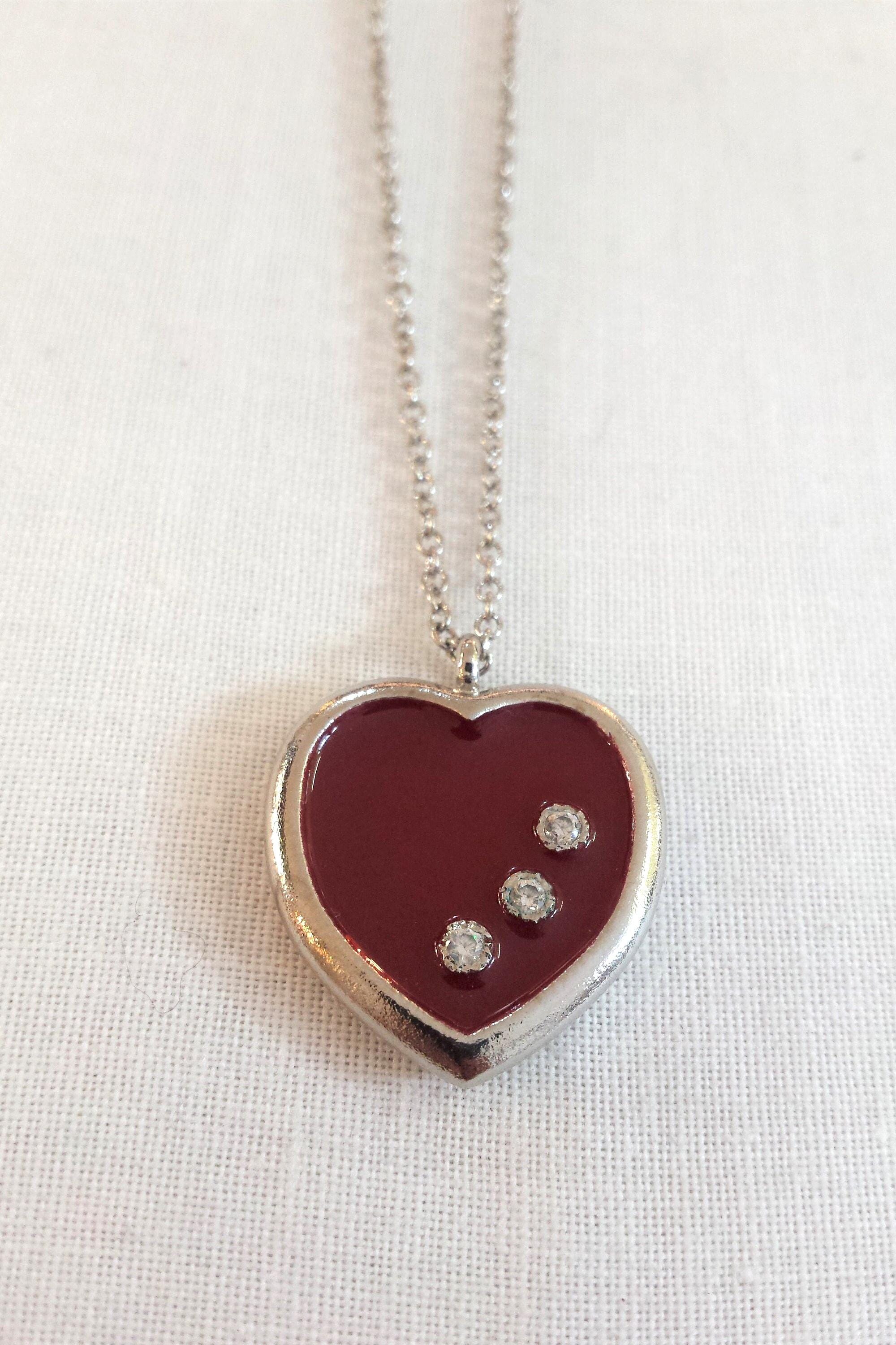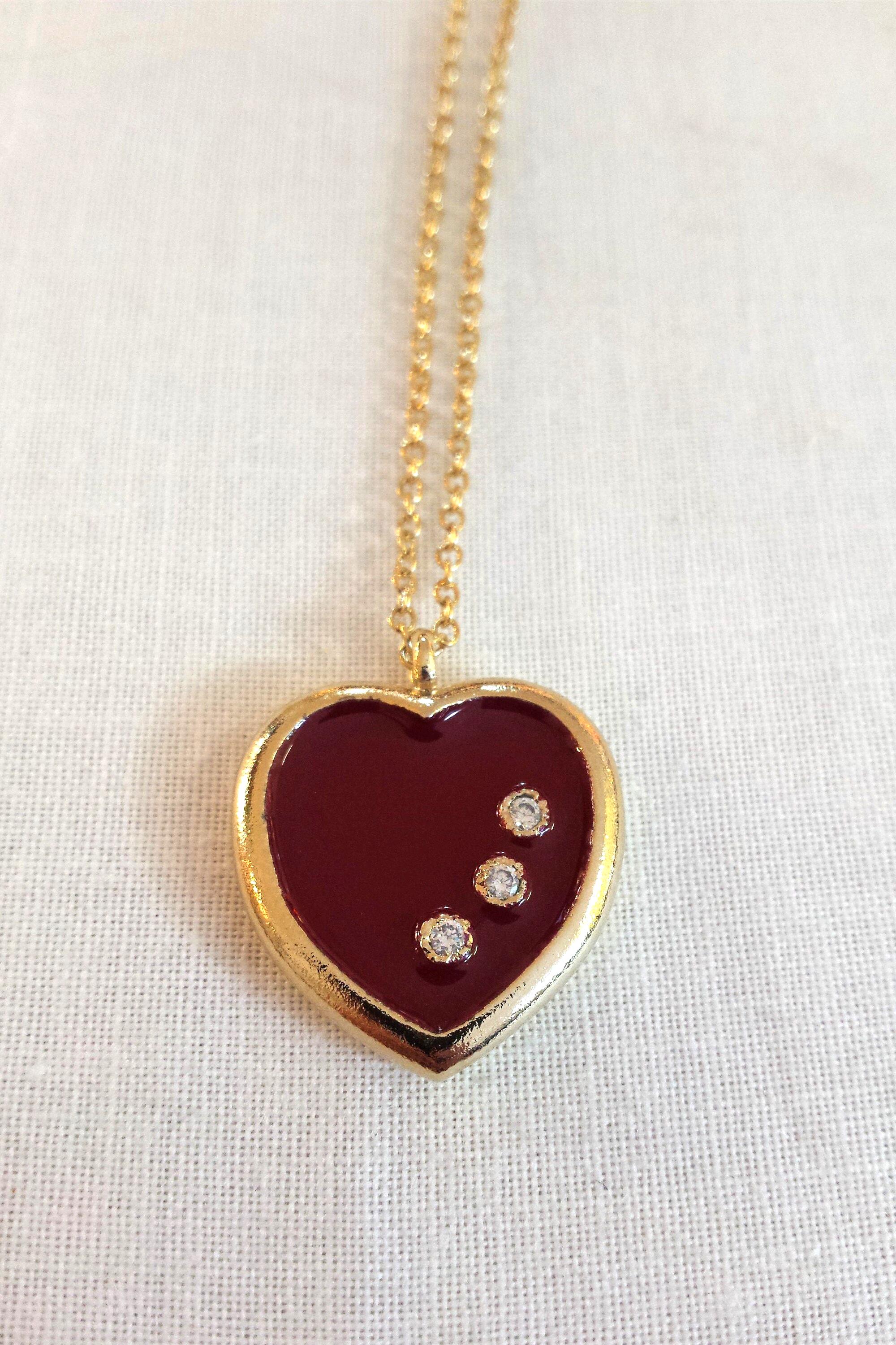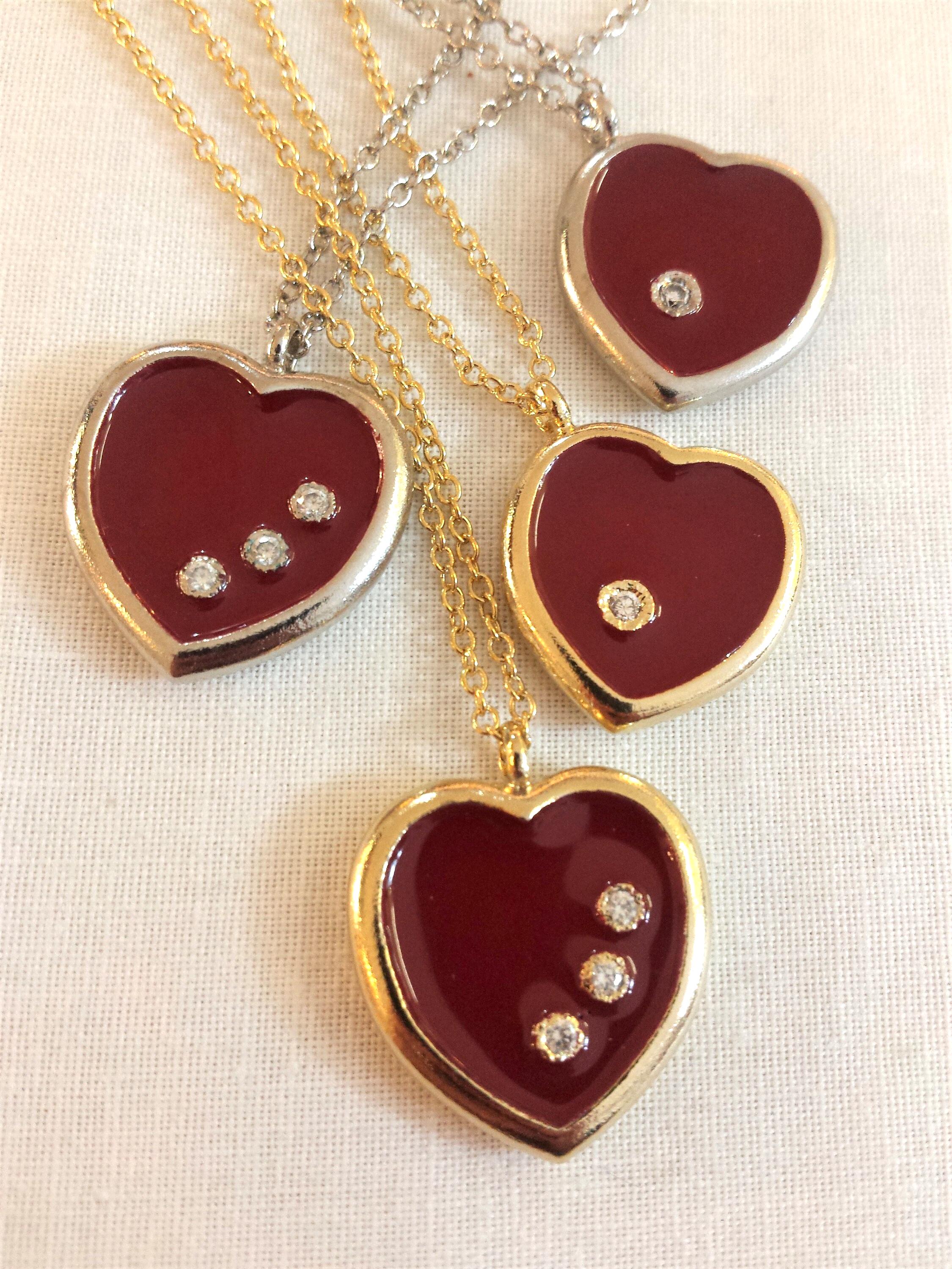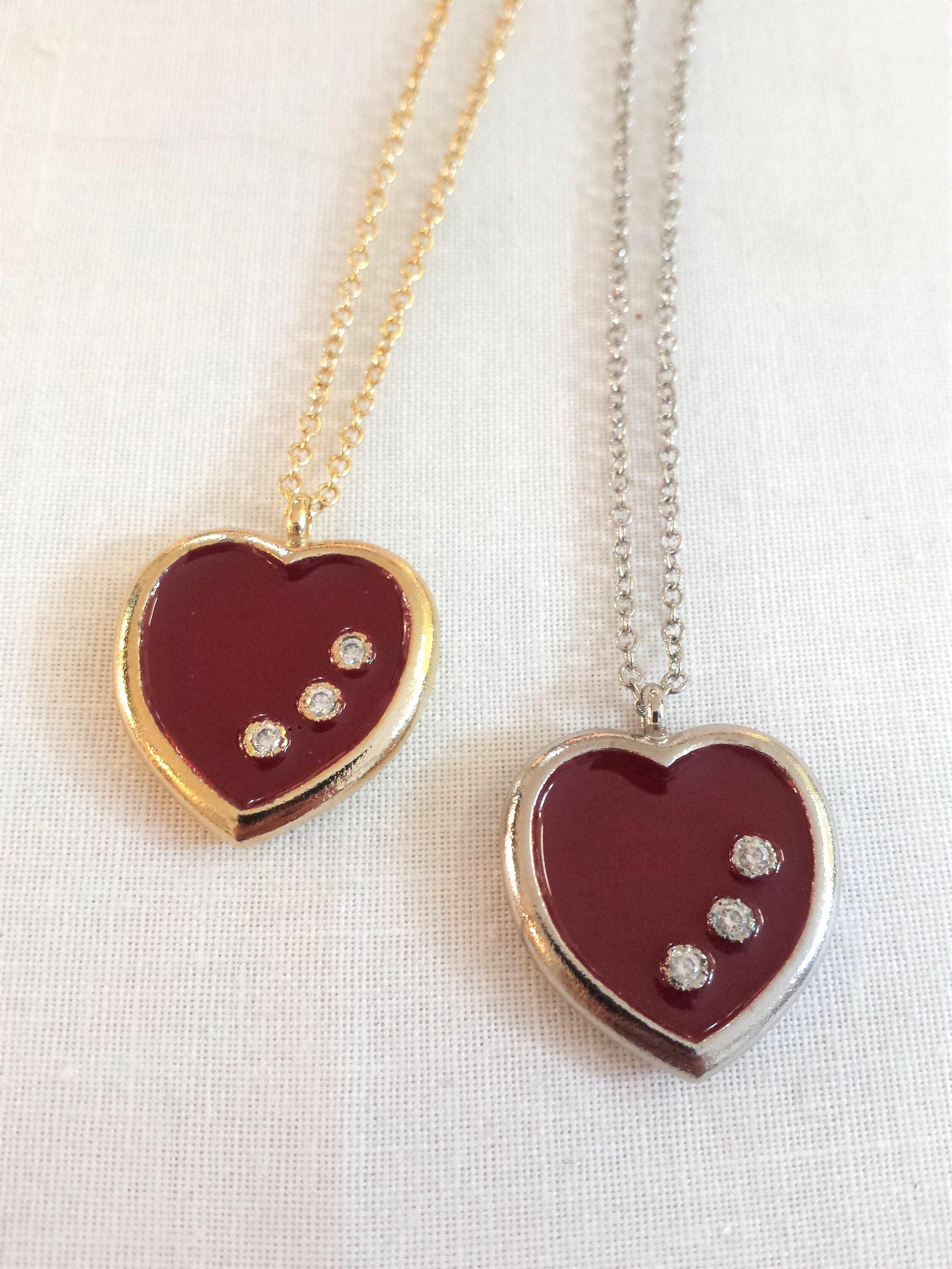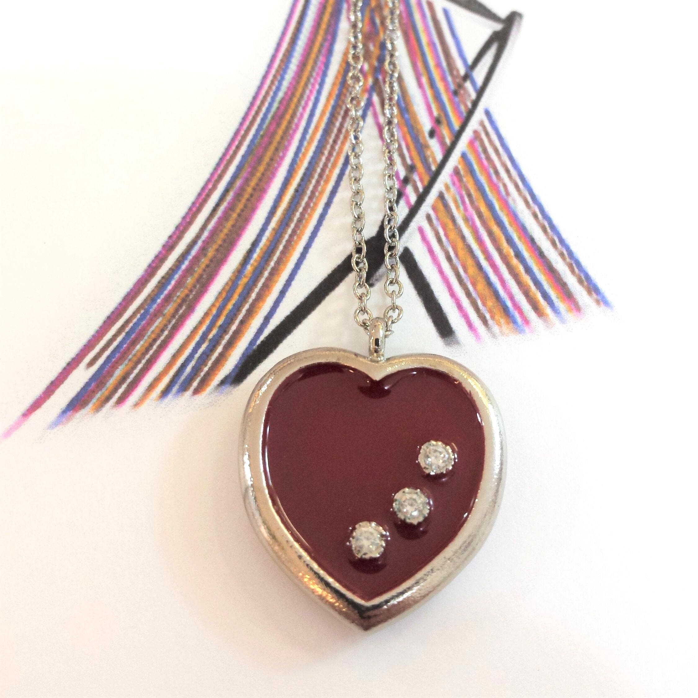 VALENTINE 3 is a handmade gold/palladium-plated bronze pendant with scratch enamel finish and cubic zirconia, featuring a delicate chain. This necklace is the perfect gift to celebrate Valentine's day.