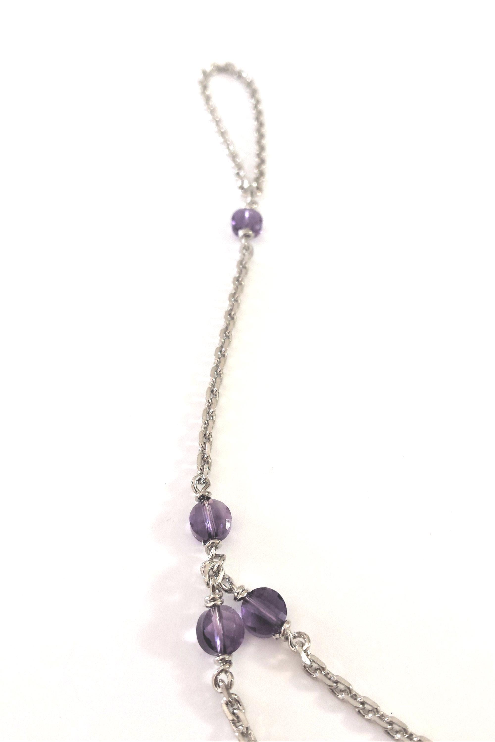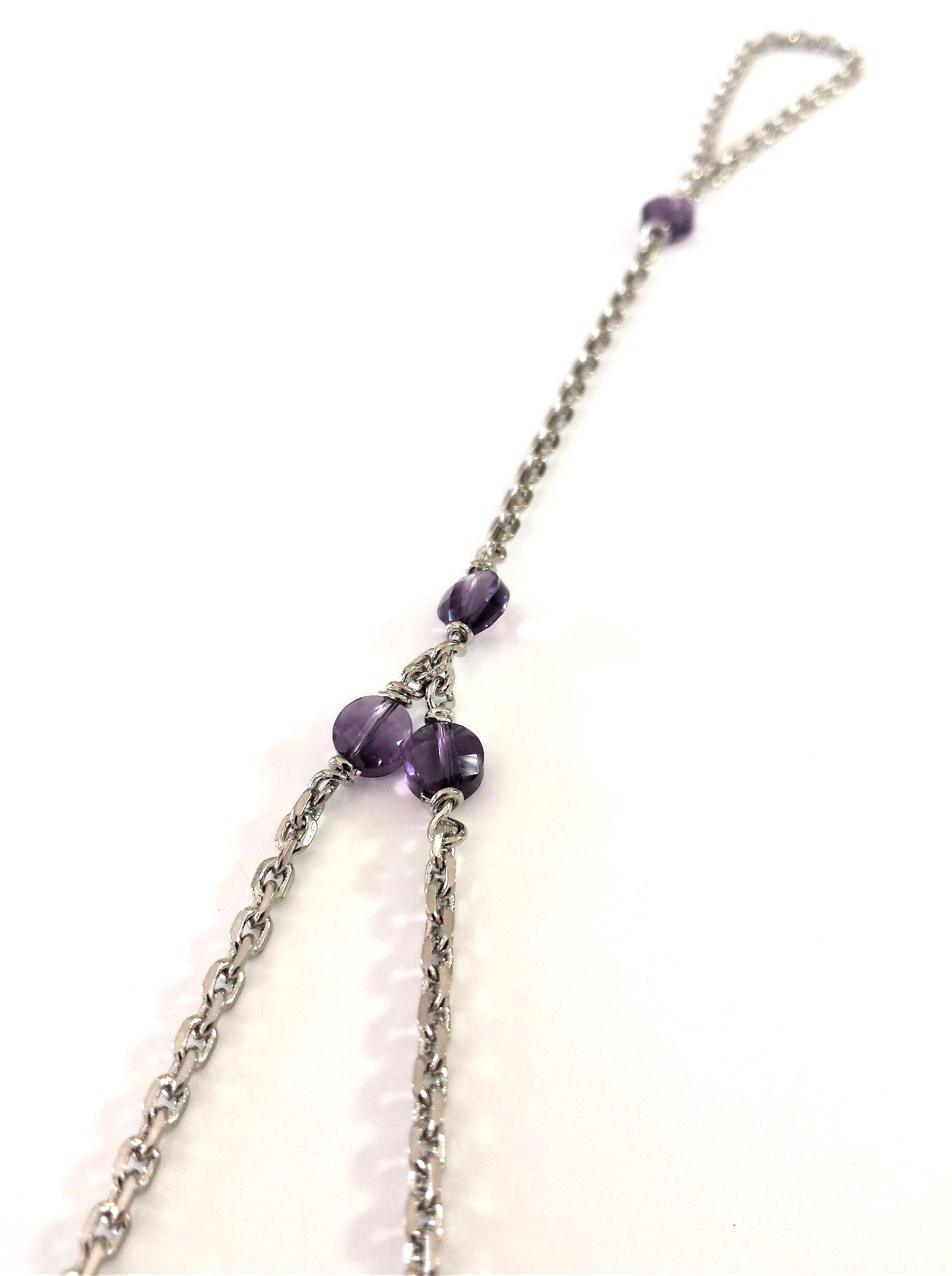 Also in this case, the amethyst is in the foreground on the MALIKA hand bracelet. Extremely bright little purple touches despite its small size. The nature of this jewel is to become your best friend at all times.