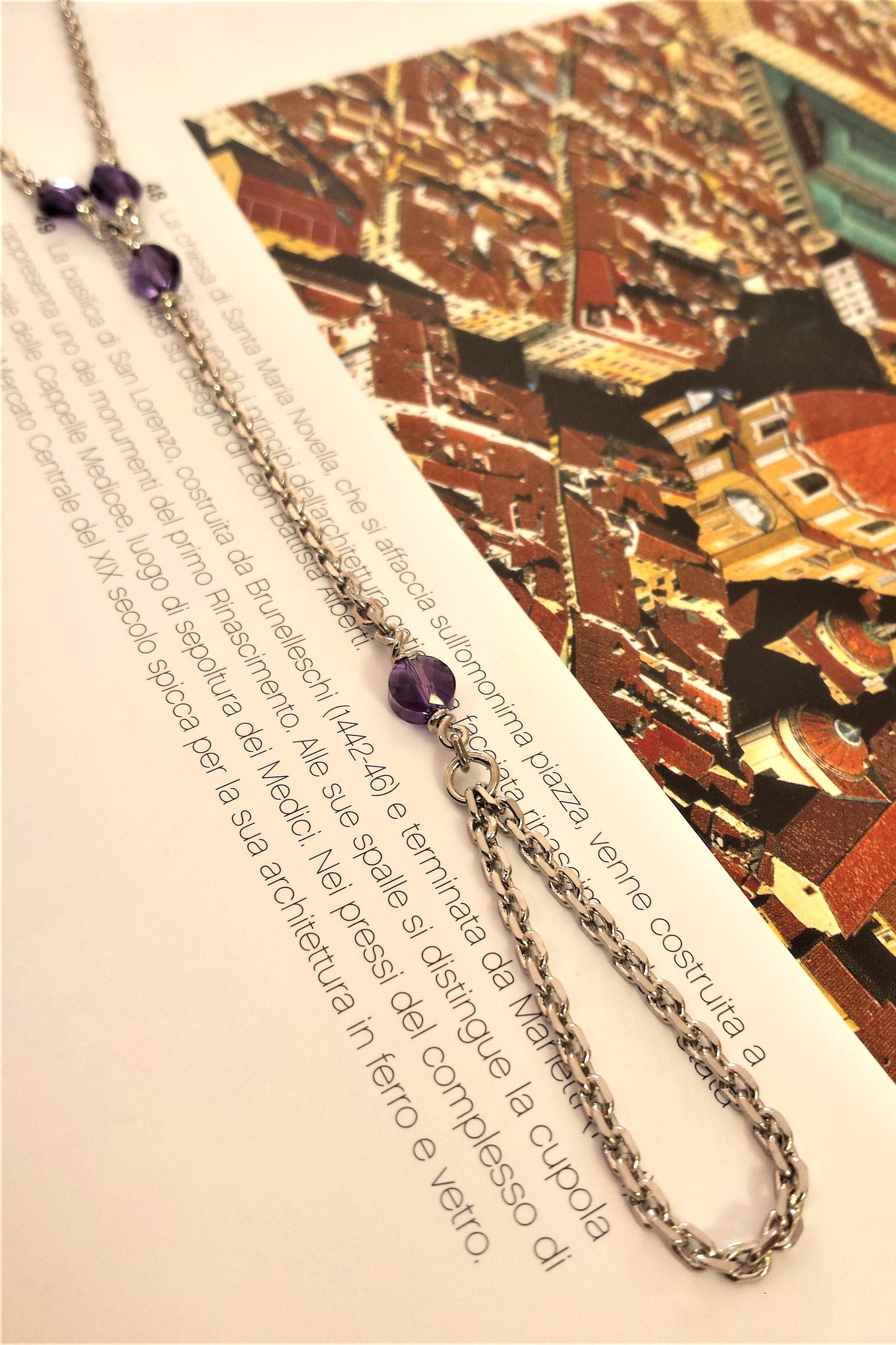 Also in this case, the amethyst is in the foreground on the MALIKA hand bracelet. Extremely bright little purple touches despite its small size. The nature of this jewel is to become your best friend at all times.