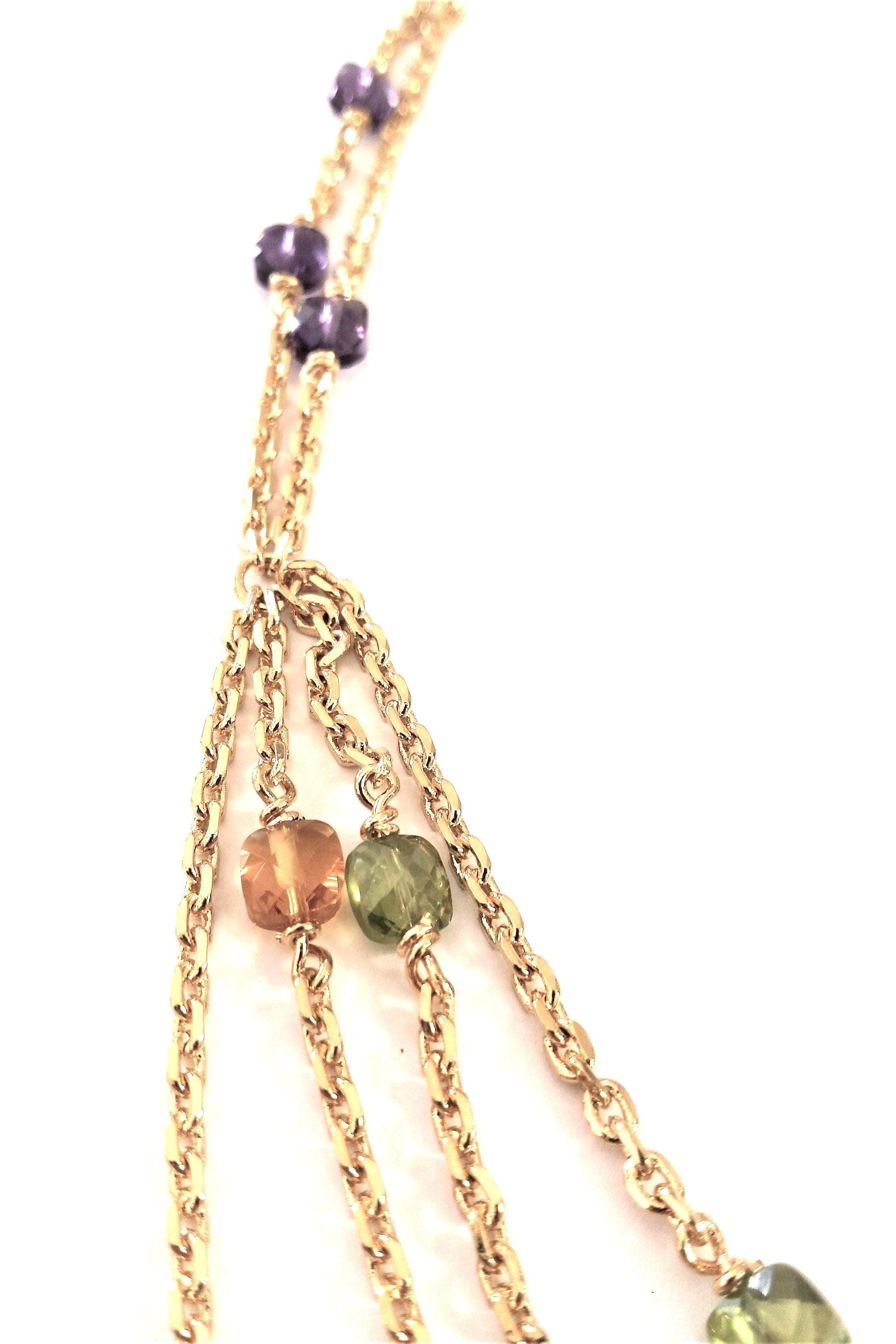 Richer in the workmanship of the other hand bracelets. MIREA was born to be the protagonist on your hand, even if more demanding, he does not lose his elegance. The briolette-cut multicolored quartzes embellish it to the point of making it a real unforgettable jewel.