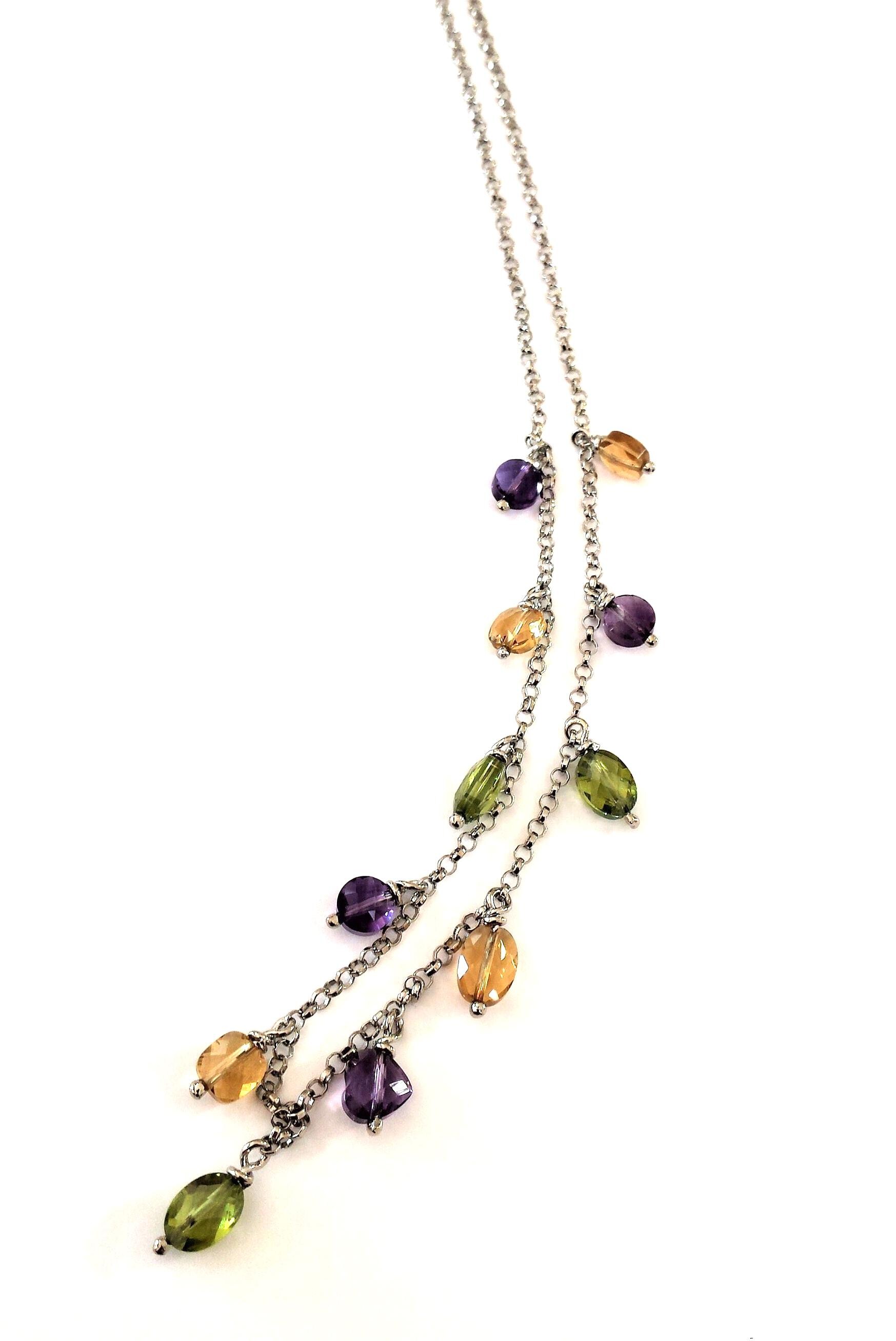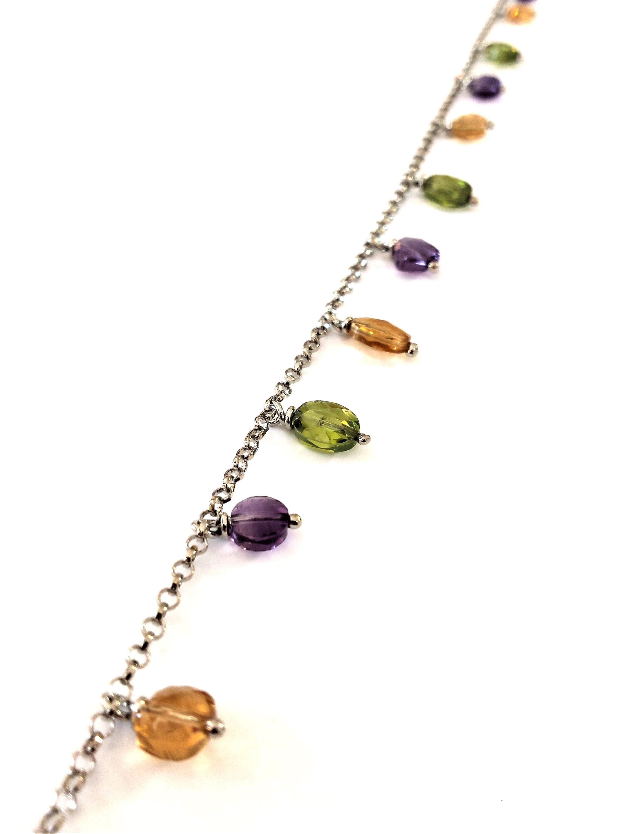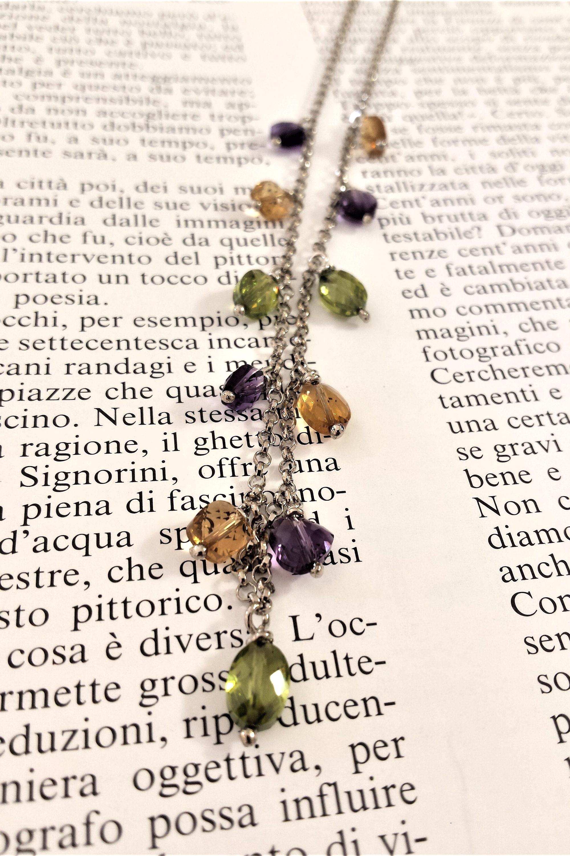 In combination with the bracelet, the VIVIANA necklace completes the set. A real cascade of precious multicolored quartzes expertly cut into briolette able to illuminate the face of the one who will wear it. Of moderate length but essentially precious.