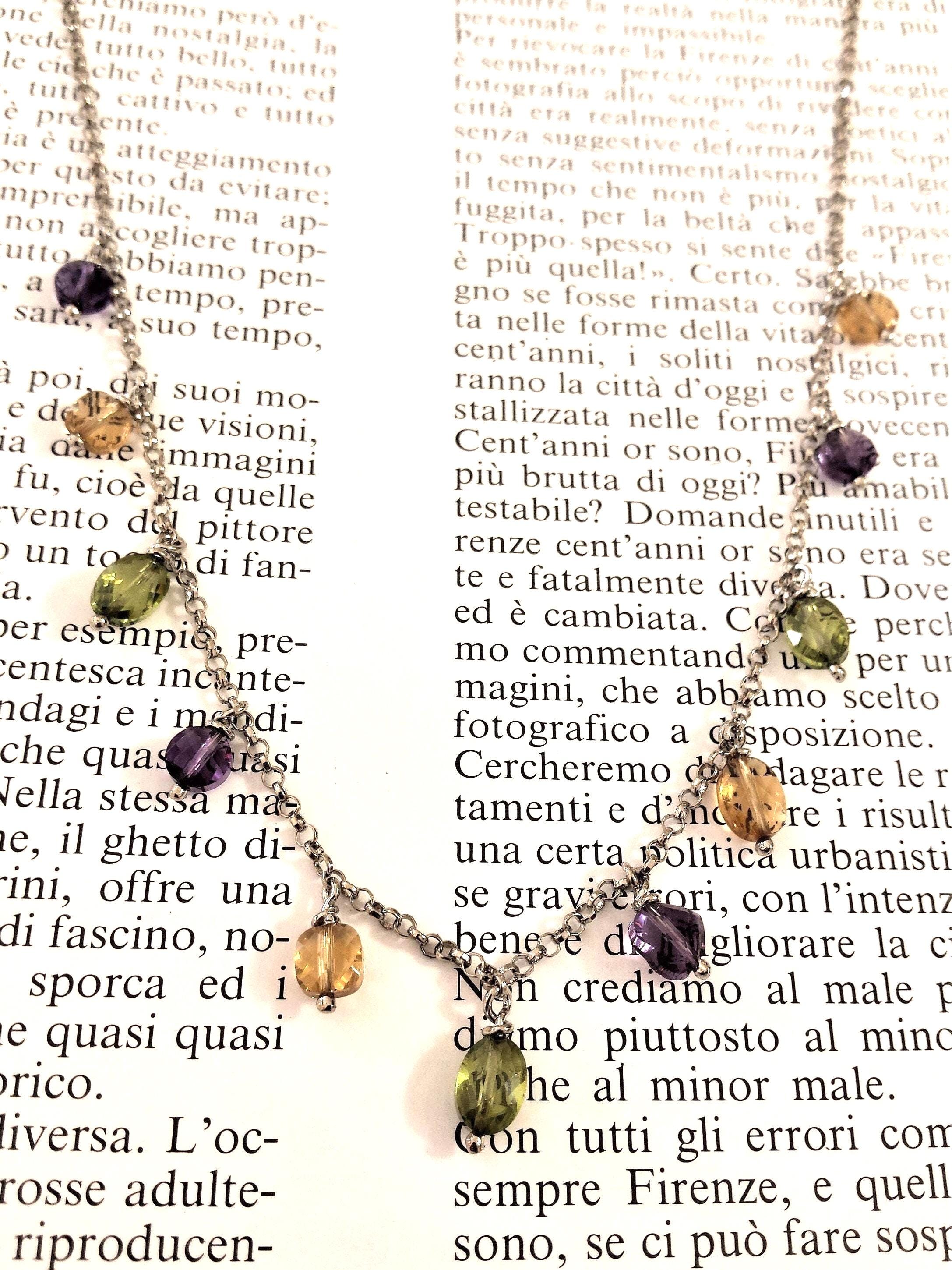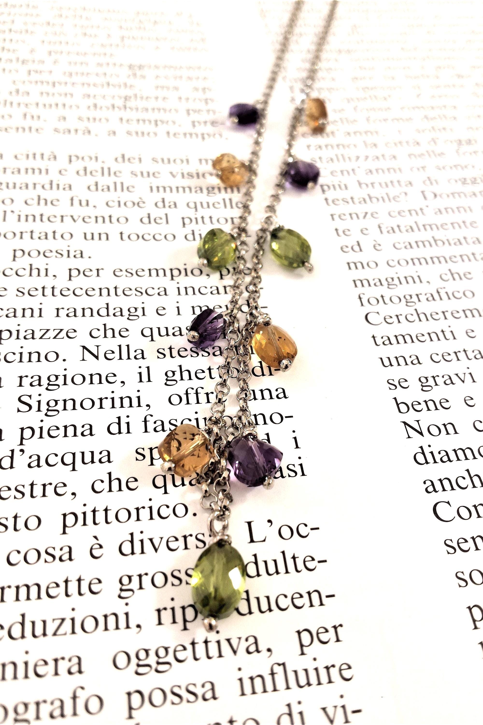 In combination with the bracelet, the VIVIANA necklace completes the set. A real cascade of precious multicolored quartzes expertly cut into briolette able to illuminate the face of the one who will wear it. Of moderate length but essentially precious.