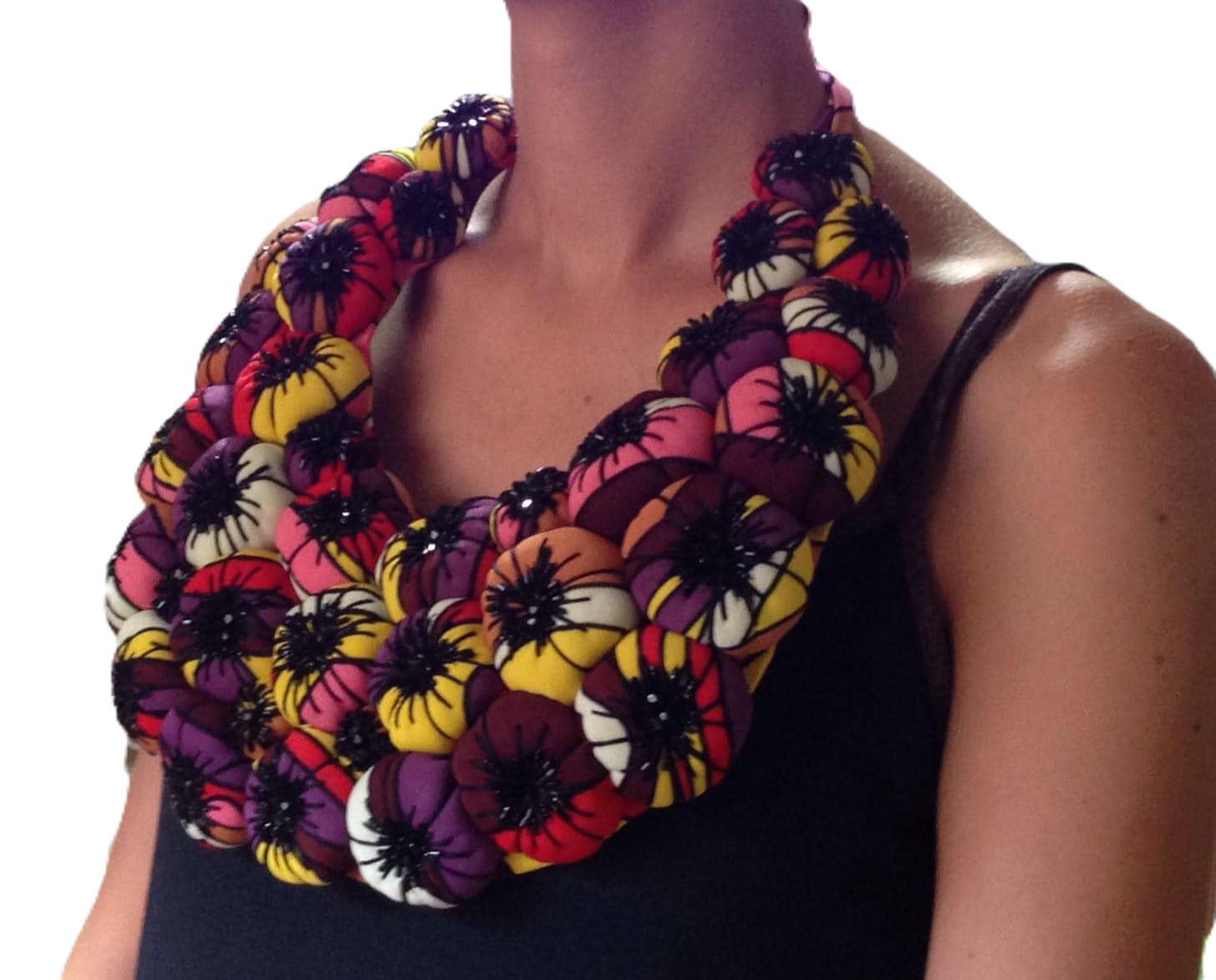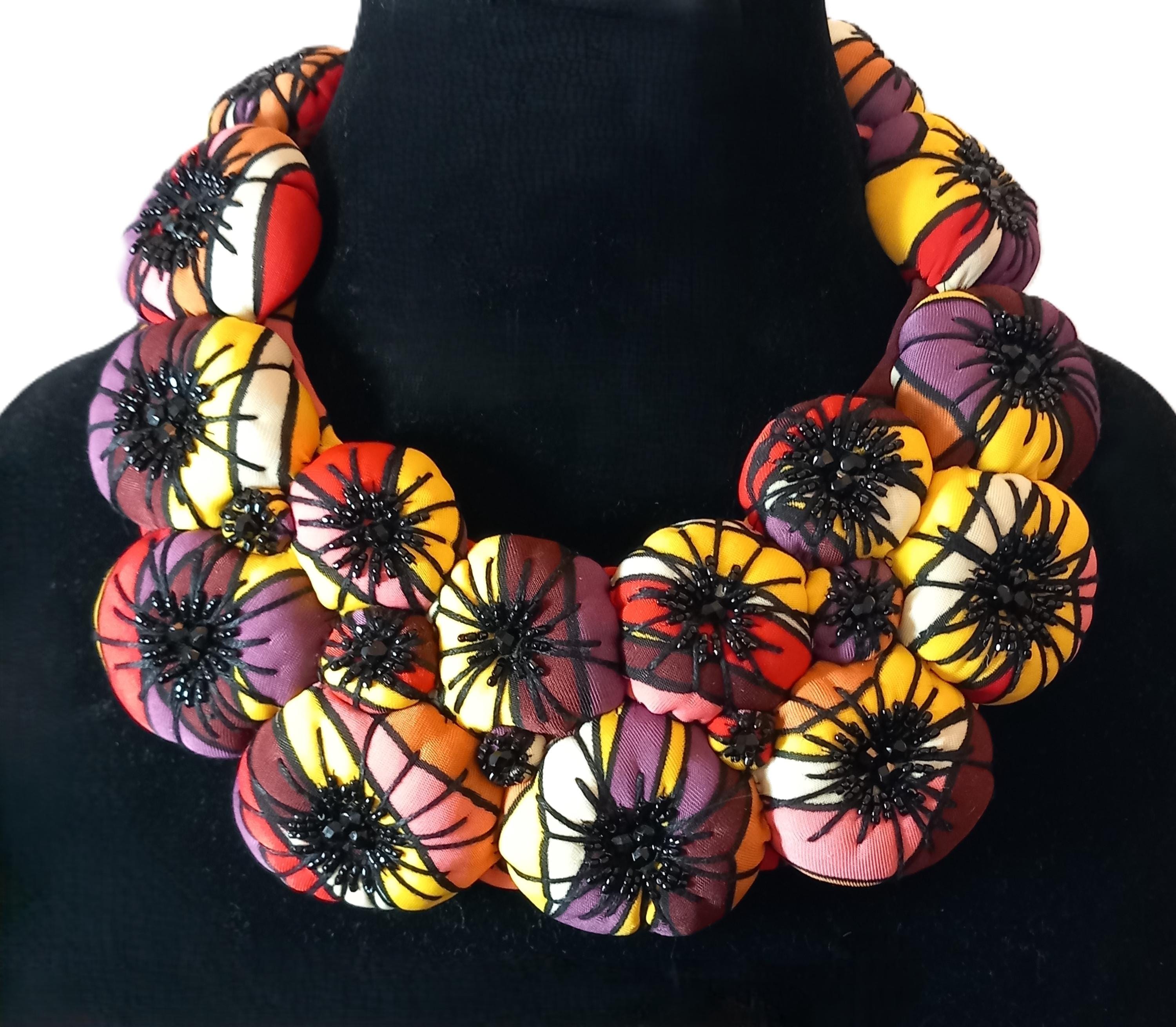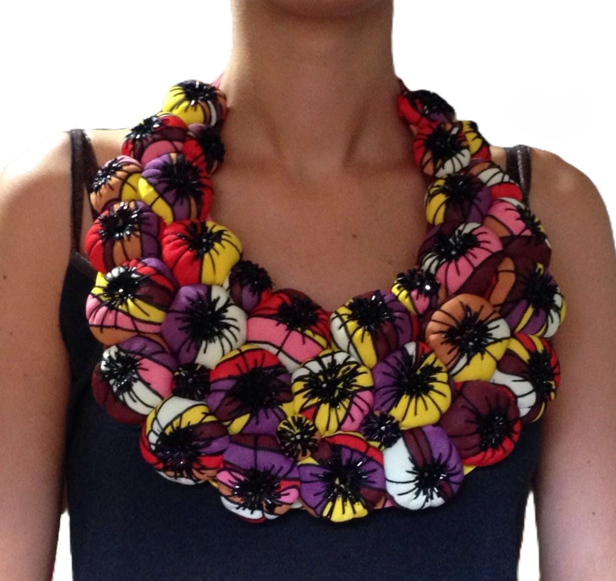 Necklace POP • Silk and Crystals • Made of fabric and dedicated to Pop Art • Unique and original • Handmade in Florence, Italy
