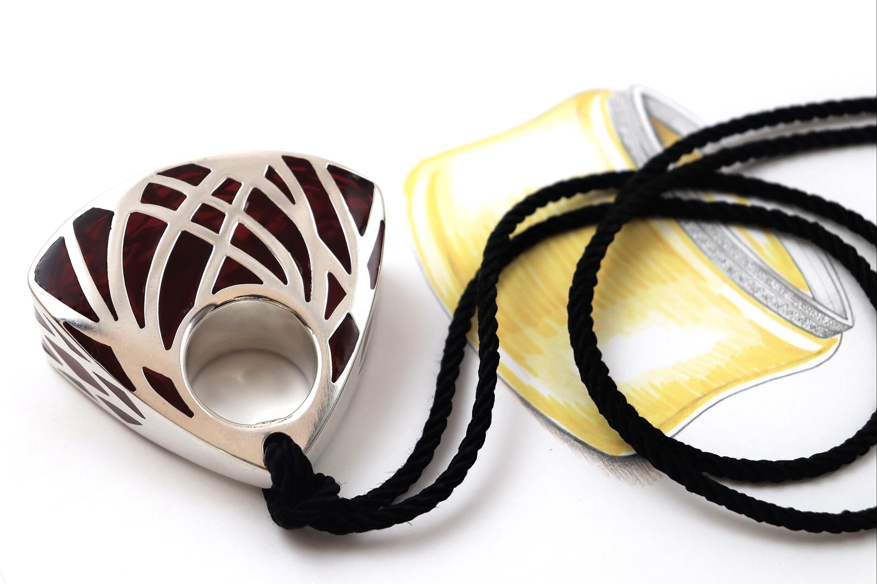 Materials: 925‰ silver, handcrafted enamel, genuine leather cord included.