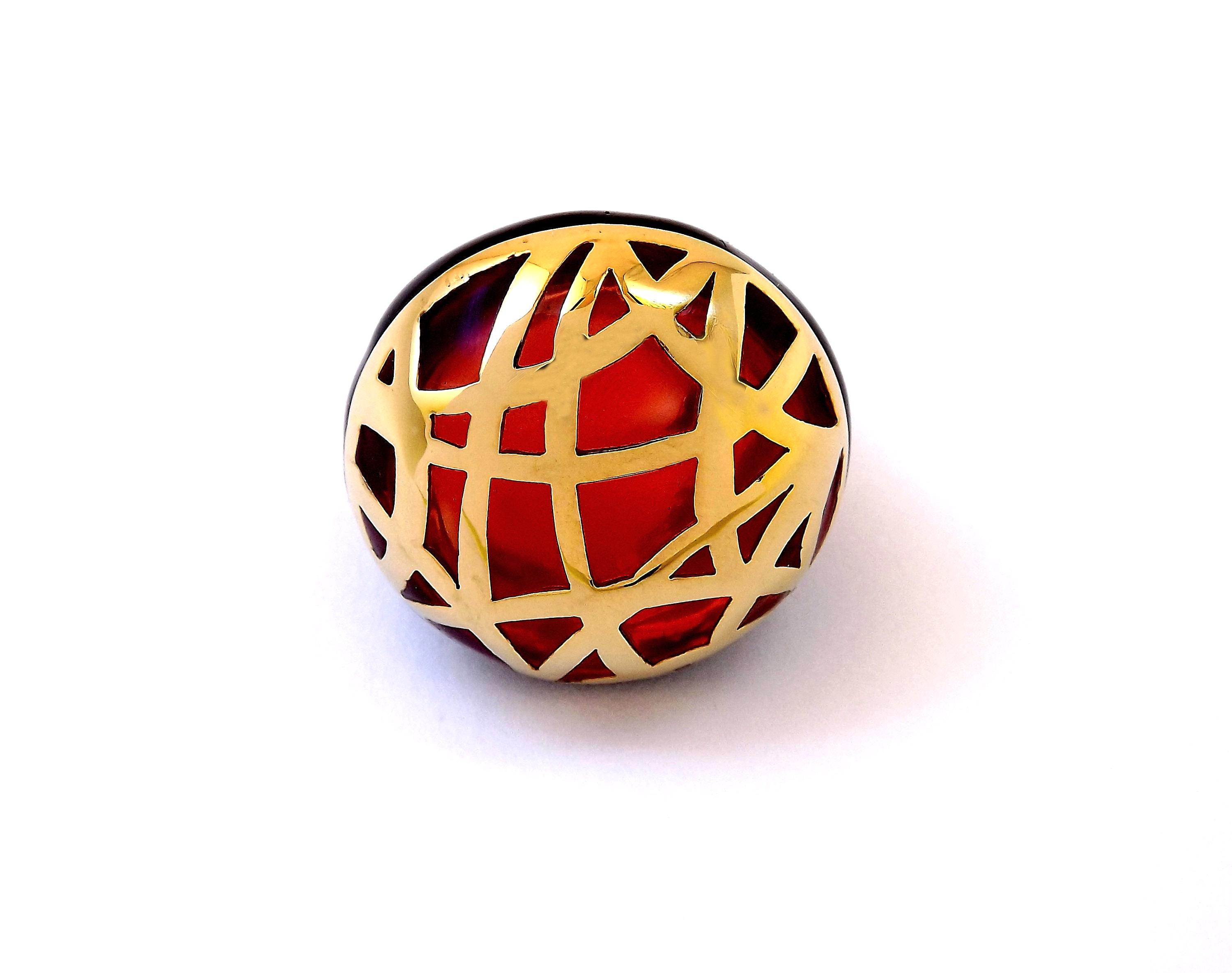 The ring is handmade in wax; afterwards, we proceed with the lost wax casting, the enamelling, the finishing and the final polishing. The 24Kt gold plating is nickel free.