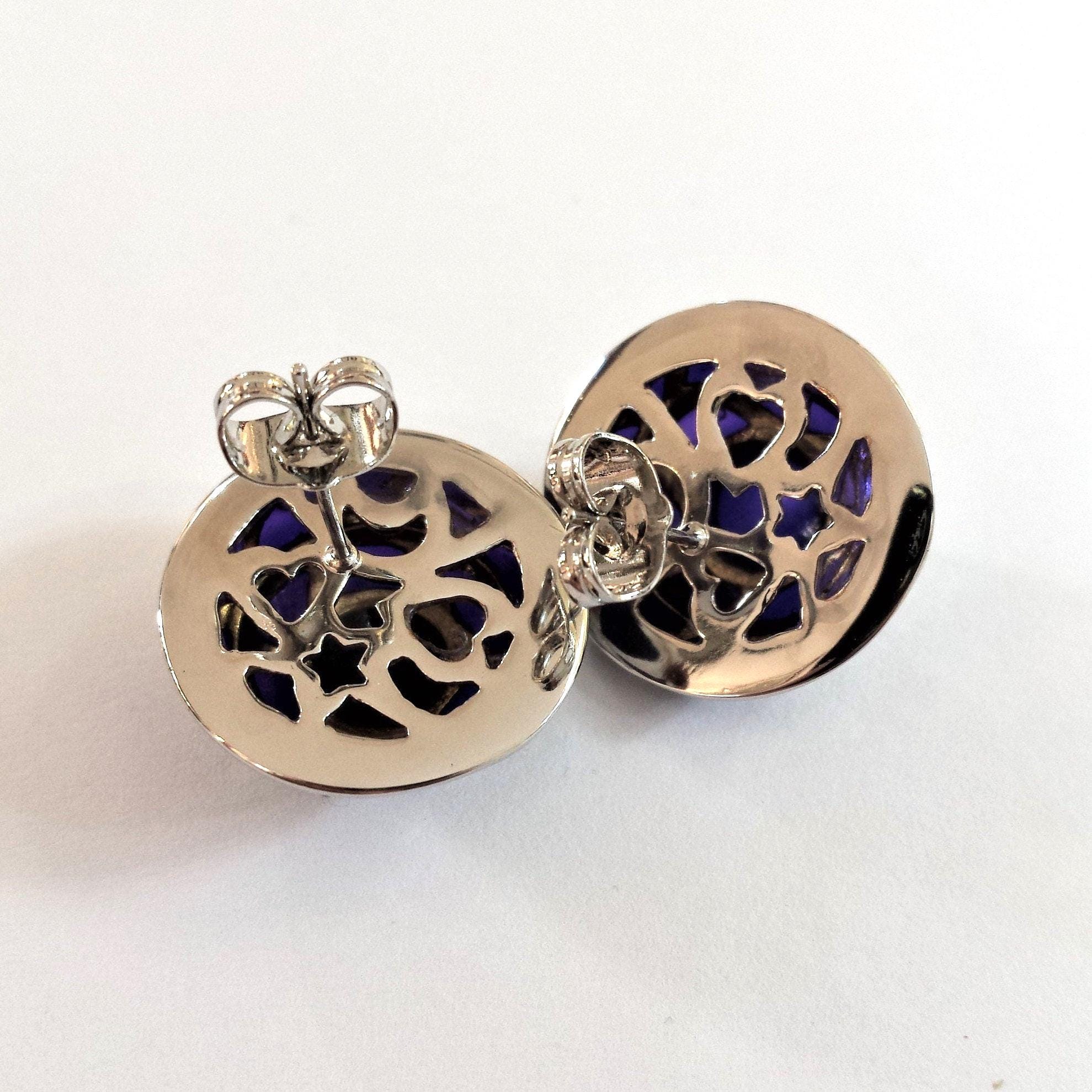 This earrings are handmade in wax; afterwards, we proceed with the lost wax casting, the enamelling, the finishing and the final polishing. The 24Kt palladium plating is nickel free.