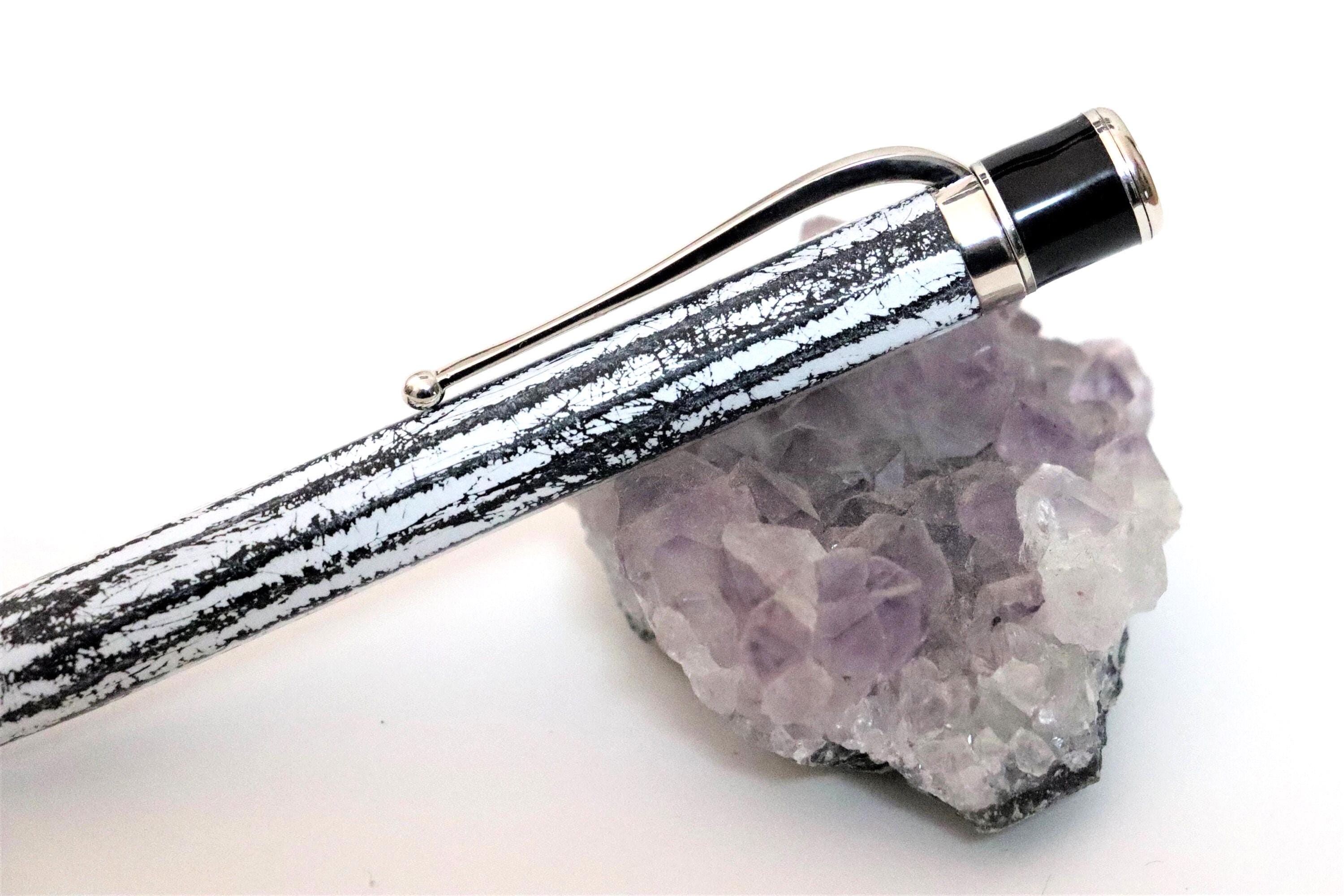APOLLONIO WHITE is a handmade precious resin ballpoint pen with nickel-free 24Kt palladium plated bronze elements and scratch-proof enamels. A beautiful gift for professional and academic milestones, this ballpoint pen brings a tactile feel to any writing occasion. Being the pen handcrafted the final product may differ slightly from the picture.